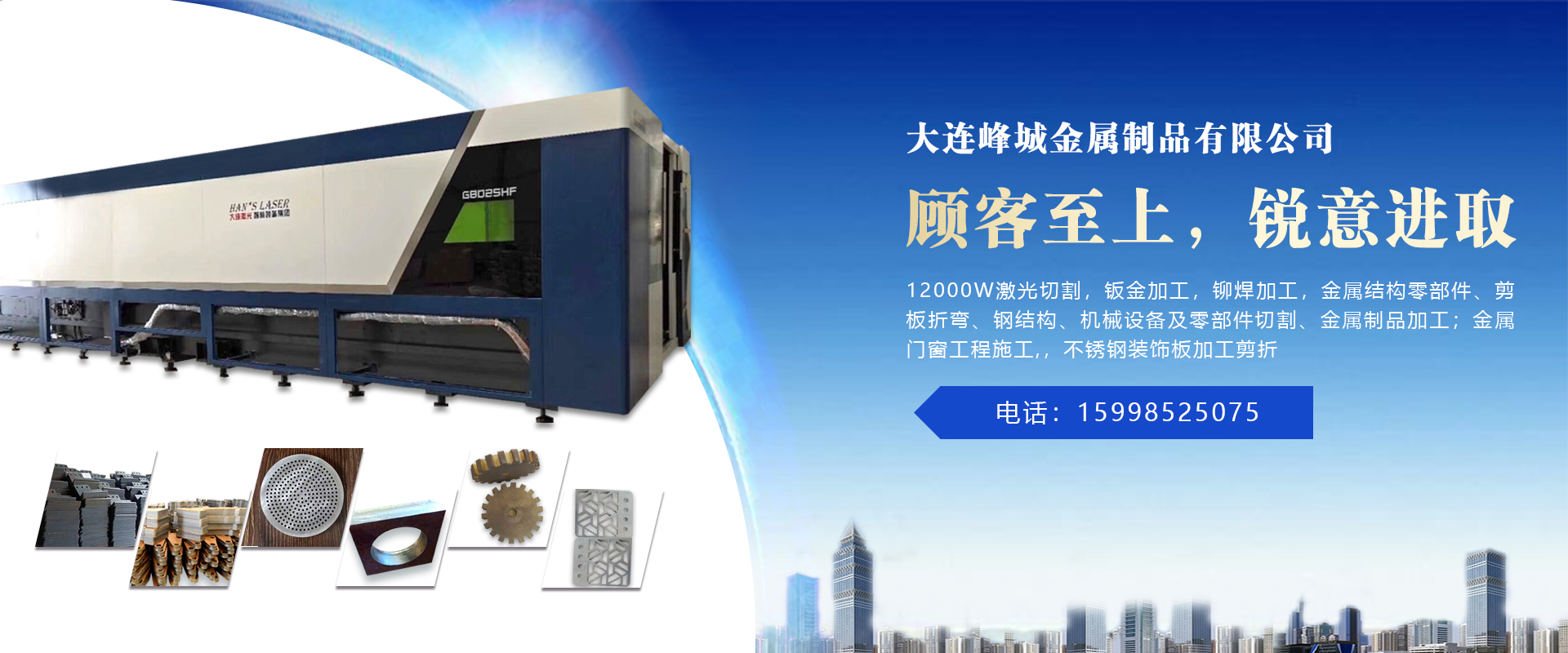 大连峰城钢构彩板有限公司,成立于2009年10月1日,注册资金人民币300万。公司位于辽宁省大连市金州区拥军路18号。具有专业的高级技术人员和一流的生产设备,公司引进大型激光切割机3台,12000瓦大族激光切割机,切割幅面2.5米*8米 。宏山3000瓦切割机2台,专业激光切割加工,专业激光切管,切板材,型材(工角槽钢)切割厚度:碳钢40mm、不锈钢50mm、铝板40mm,铜板20mm,切割价格低于市场价20%以上,可完全替代等离子切割机。现场加工制作各种金属、非金属板材的造型、穿孔,加工产品不受模具限制,公司拥有4米剪板机,折弯机,可承揽各项加工项目。